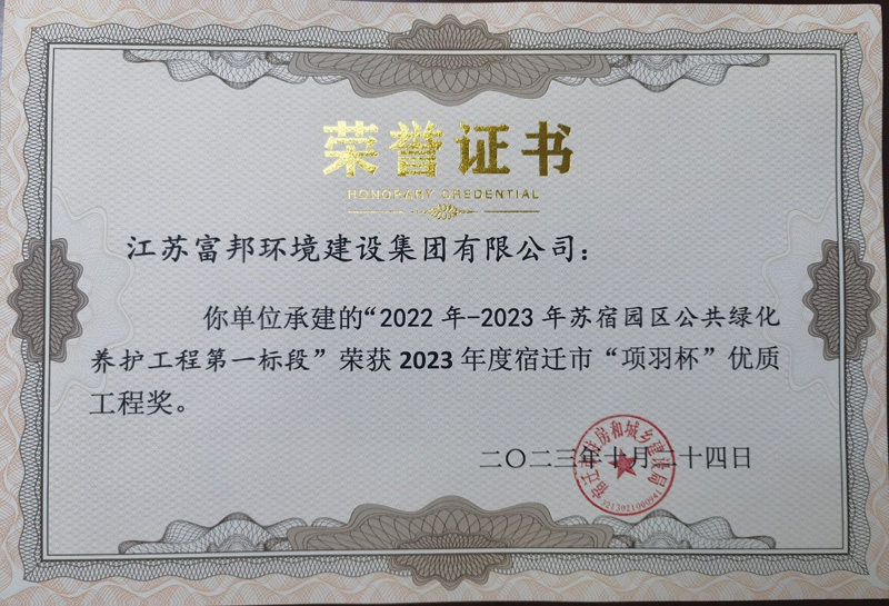 近日,由宿遷市蘇宿園區(qū)建設(shè)發(fā)展有限公司負(fù)責(zé)管理的蘇宿工業(yè)園區(qū)2022-2023年公共綠化養(yǎng)護(hù)工程第一、二標(biāo)段,同時榮獲2023年度宿遷市“項(xiàng)羽杯”優(yōu)質(zhì)工程獎。