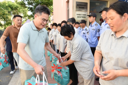入伏以來,宿遷持續(xù)高溫晴熱天氣,給堅(jiān)守一線崗位的勞動者帶來不小挑戰(zhàn)。為有效落實(shí)防暑降溫措施,切實(shí)保障一線員工身體健康與作業(yè)安全,7月24日,建發(fā)公司組織開展了一線員工高溫慰問活動。公司副總經(jīng)理倪松、相關(guān)部門負(fù)責(zé)人參加了慰問。