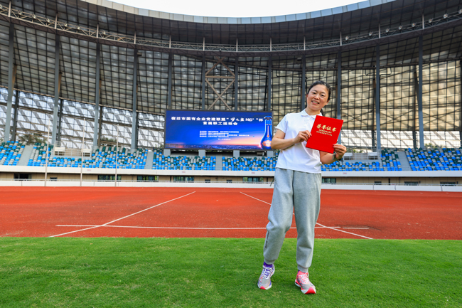 運(yùn)動(dòng)場上,建發(fā)公司桑曉芳以5分57秒33毫秒領(lǐng)先第二名12秒之多的絕對(duì)優(yōu)勢斬獲女子青年組1500米田徑賽金牌。