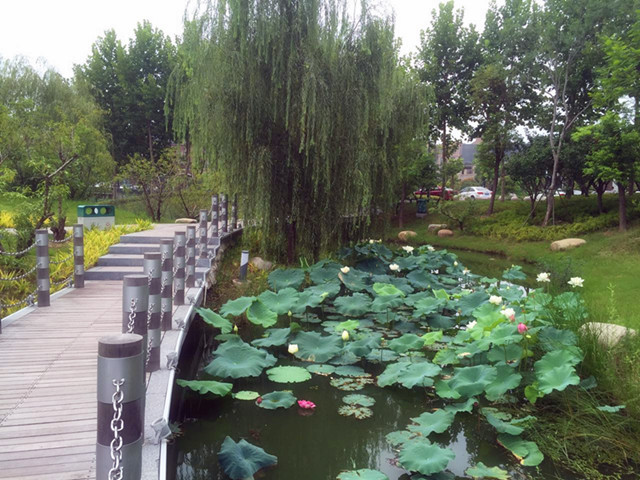 公園內水面栽植荷花、睡蓮面積約1.2萬平方米,荷花花期在6月至9月間,睡蓮花期在6月至8月, 78月均為盛放期。